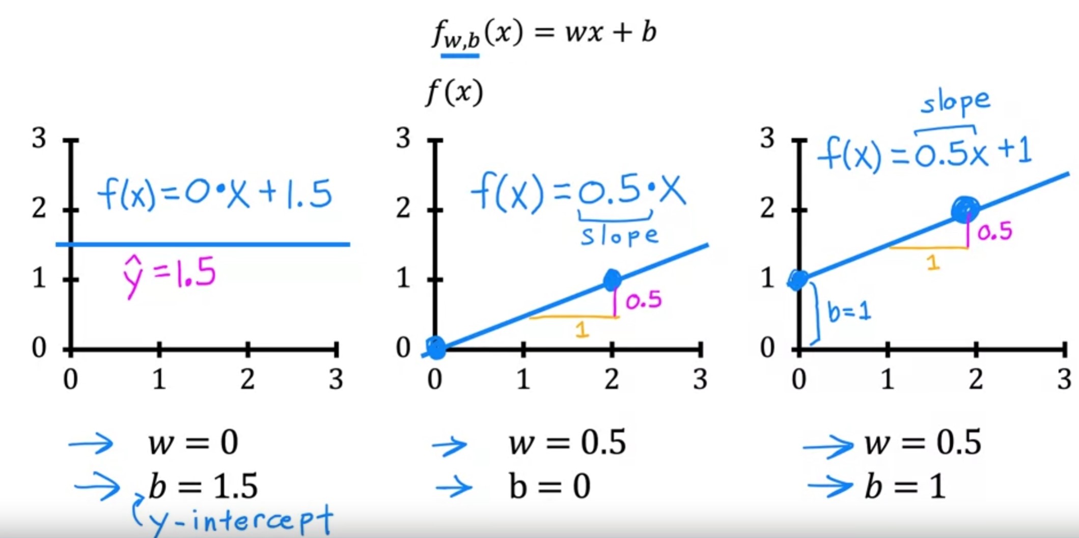 \begin{equation} f_w,_b(x) = wx + b \end{equation}