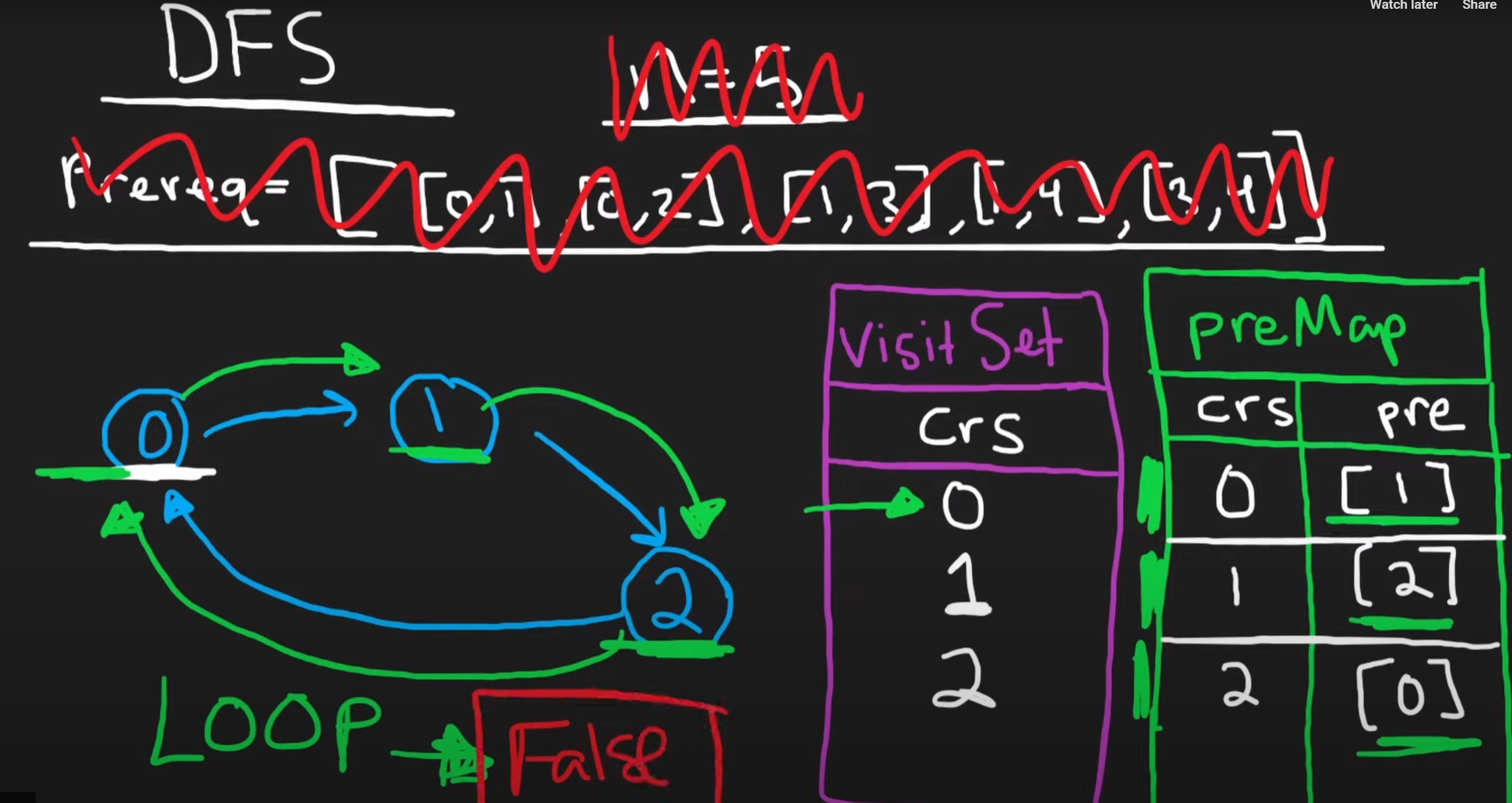 - How do we detect a cycle or loop of prerequisite? We can use an array or set that tracks which courses we are visiting along with the DFS search.