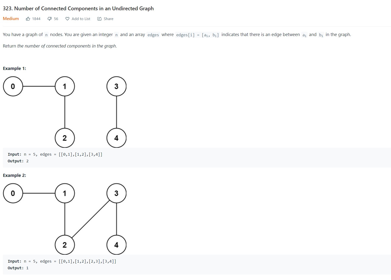 1. Number of connected components in an undirected graph - LC 323 - Medium